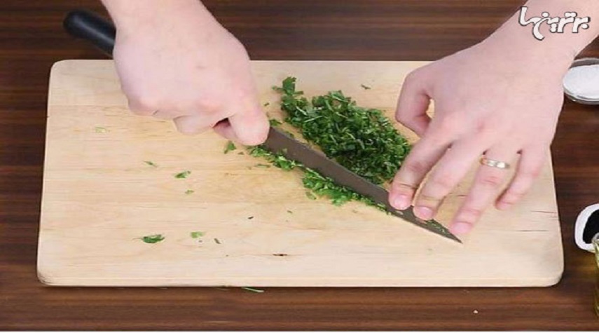 2- برگهای جعفری را خرد کرده و برای تزئین سالاد کنار بگذارید.