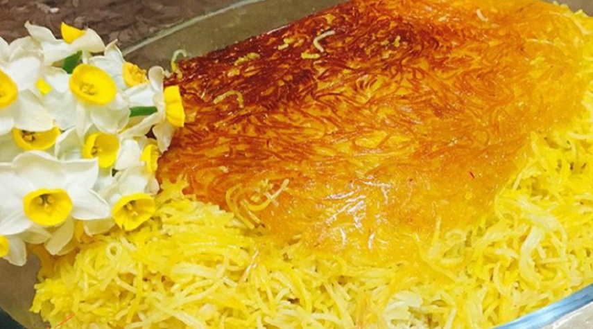 گلاب ، زعفران دم کرده ، شکر ، کره و هل را در ظرفی مخلوط کرده کنار بگذارید .ورمیشل آبکش شده را داخل قابلمه بریزید و مخلوط گلاب و زعفران را اضافه کرده و همه مواد را هم بزنید و سرو کنید.
