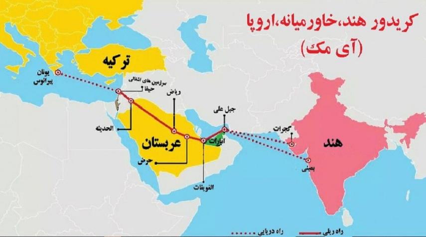 رهبر معظم انقلاب در خطبه عربی خود نسبت به طرح غربی- عبری تبدیل اسرائیل به دروازه صادرات انرژی از منطقه به جهان غرب و واردات کالا و فناوری از غرب به منطقه یا پروژه کریدور آی مک هشدار داده و رفتار جنایتکارانه این رژیم را بیش از هر چیز ناظر به این پروژه دانستند.
