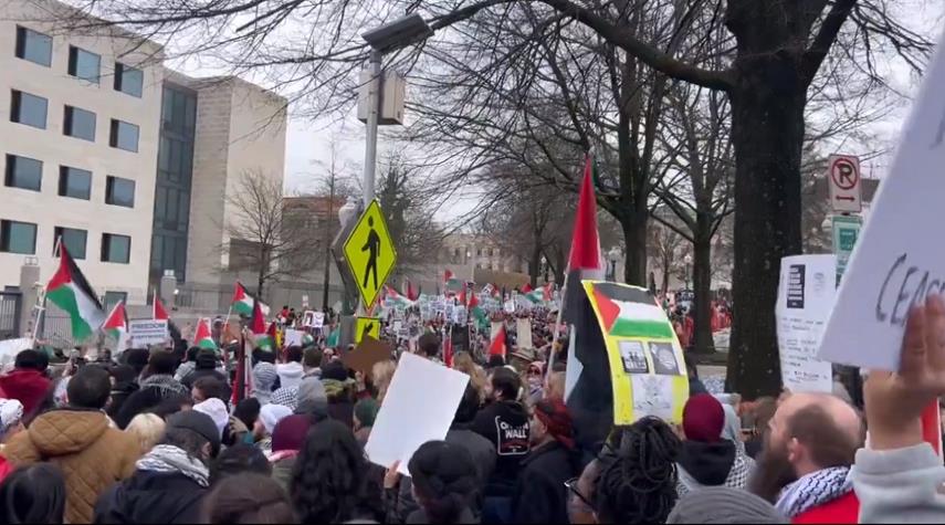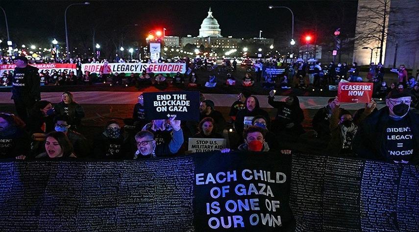 آمریکایی ها در واشنگتن با هدف حمایت از غره و پایان یافتن حملات رژیم صهیونیستی به باریکه غزه تظاهرات برپا کردند.