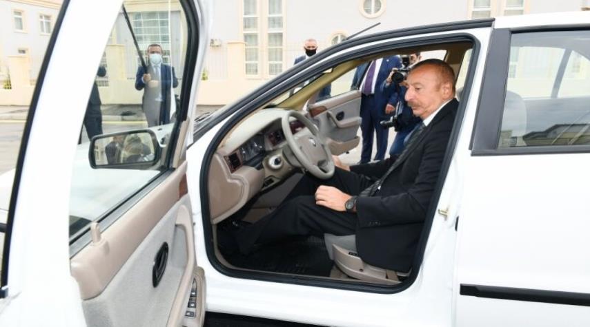 تهران- الکوثر: «الهام علی اف» رییس جمهوری آذربایجان امروز پنجشنبه در دیدار با جمعی از اعضای خانواده قربانیان و معلولین جنگ «قره باغ»، پشت فرمان خودروی سواری «خزر» تولید مشترک ایران و جمهوری آذربایجان نشست .
