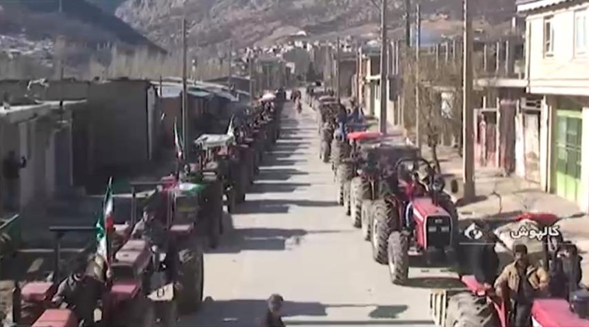رژه تراكتورها در روستاي نام نيك كالپوش +فيلم