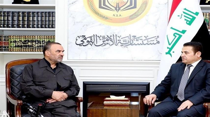 مشاور امنیت ملی عراق و جانشین اطلاعات سپاه پاسداران درباره تقویت همکاری اطلاعاتی گفتگو و رایزنی کردند.