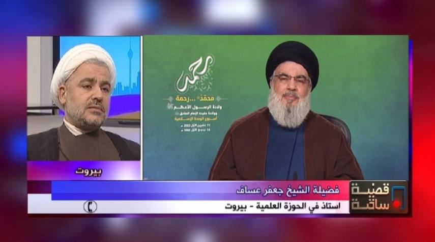 قضیه ساخنه : شیخ جعفر عساف استاد حوزه علمیه از بیروت در شبکه الکوثر درخصوص سخنان سید حسن نصرالله و موضوع وحدت اسلامی سخن گفت.