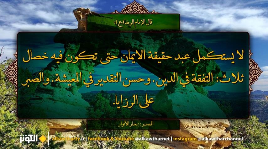تهران الکوثر: امام رضا علیه السلام، سه نشانه برای کامل شدن ایمان بنده ذکر کردند.