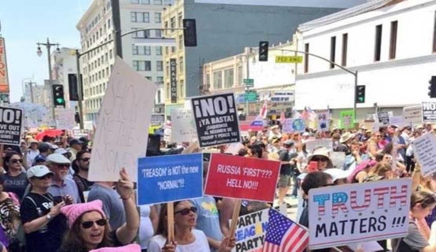 آمریکاییهای معترض به تبانی احتمالی بین ستاد انتخاباتی ترامپ با روسیه، در بیش از ۱۳۰ شهر در سراسر آمریکا تظاهرات کردند.