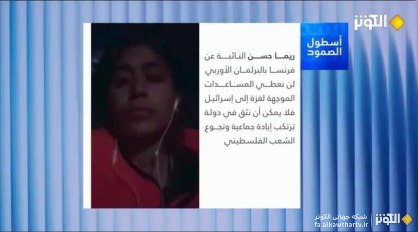 ریما حسن، نماینده فرانسوی پارلمان اروپا و فعال حقوقی، در گزارش خود از بازداشت فعالان ناوگان جهانی صمود توسط رژیم صهیونیستی، ضمن محکومیت شدید این اقدام، اظهار داشت که نیروهای رژیم اشغالگر صهیونیستی شماری از فعالان حاضر در کشتیهای حامل کمکهای بشردوستانه به نوار غزه را بازداشت کردند و آنان را به زندانهای مخوف منتقل نمودند.