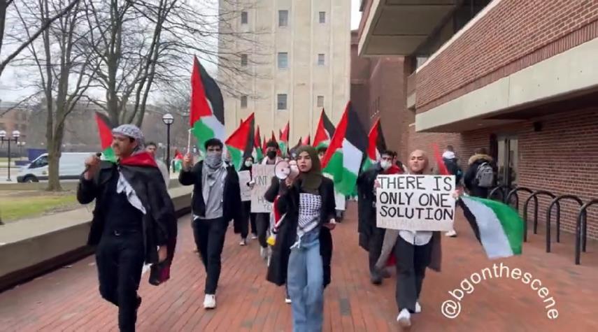 شماری از دانشجویان دانشگاه میشیگان همزمان با حضور معاون رئیس جمهور آمریکا در این دانشگاه، علیه رژیم صهیونیستی شعار داده و خواهان پایان حمایت واشنگتن از این رژیم شدند.