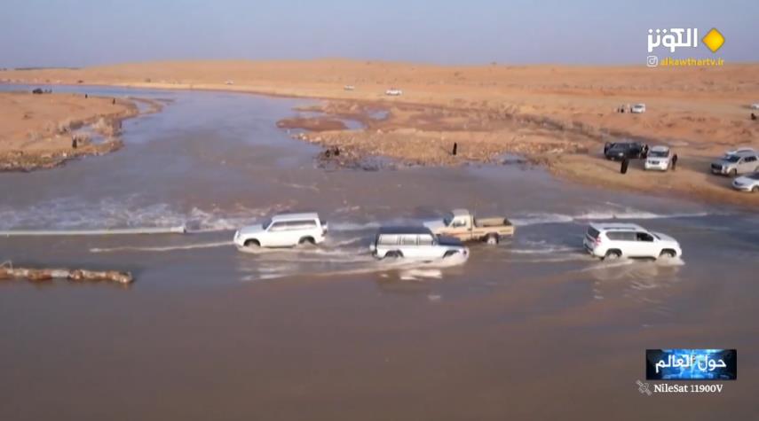 بارندگی های شدید اخیر در عربستان سعودی موجب شده است آب در بستر یکی از رودخانه های فصلی عربستان که سالها خشک بوده است، جاری شود.
