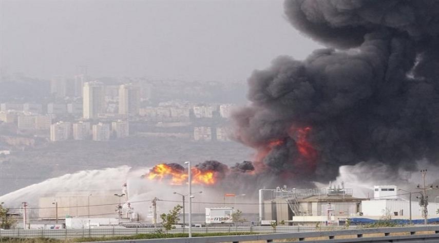 آتشسوزی در پالایشگاه حیفا در شمال فلسطین اشغالی + فیلم