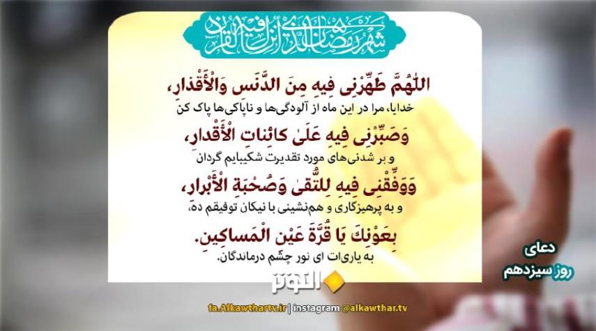 دعای روز سیزدهم ماه مبارک رمضان + متن و ترجمه تصویری