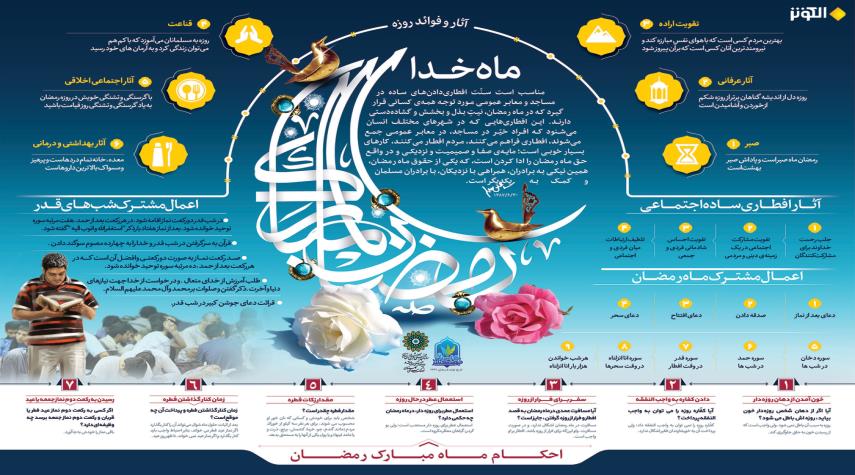 اینفوگراف رمضان شامل احکام ، فواید و اعمال کلی و ...