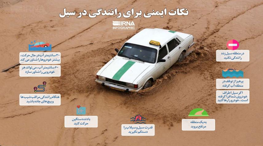تهران- الکوثر: در صورت مواجه شدن با سیل هنگام رانندگی، رعایت برخی نکات برای حفظ ایمنی ضروری است.