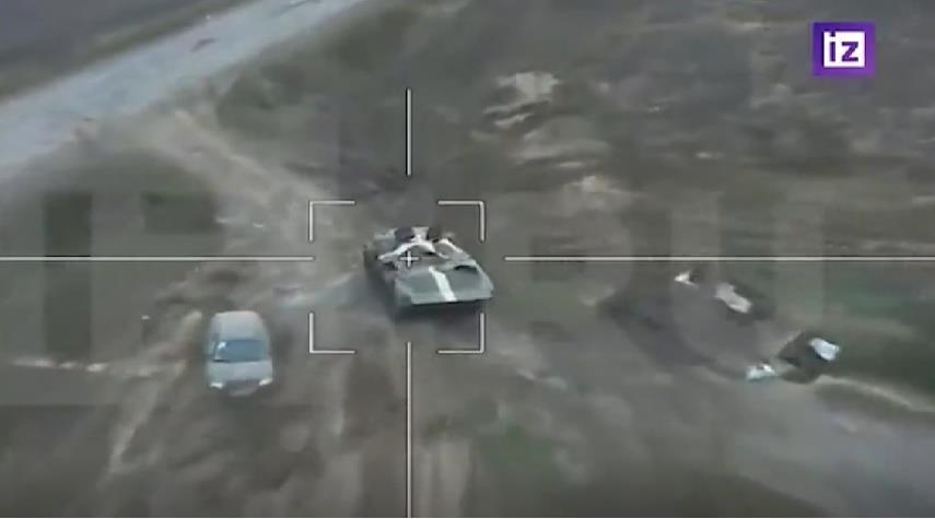 لحظه انهدام خودروهای زرهی ساخت رژیم اسرائی توسط پهپادهای روسی
