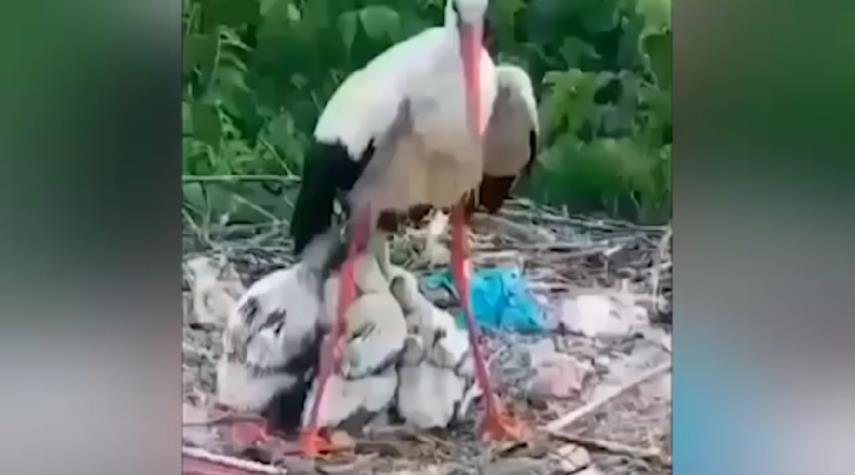 از خودگذشتگی لک لک مادر برای جوجههایش +فیلم