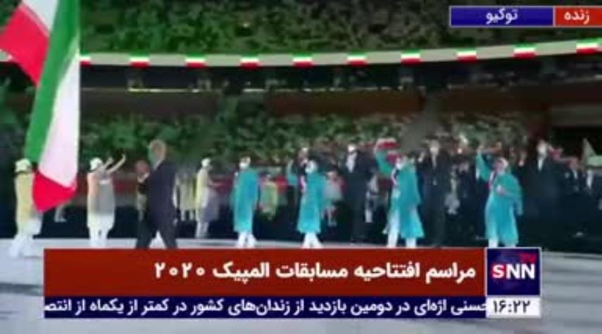 رژه کاروان ایران در ورزشگاه افتتاحیه المپیک ۲۰۲۰ توکیو