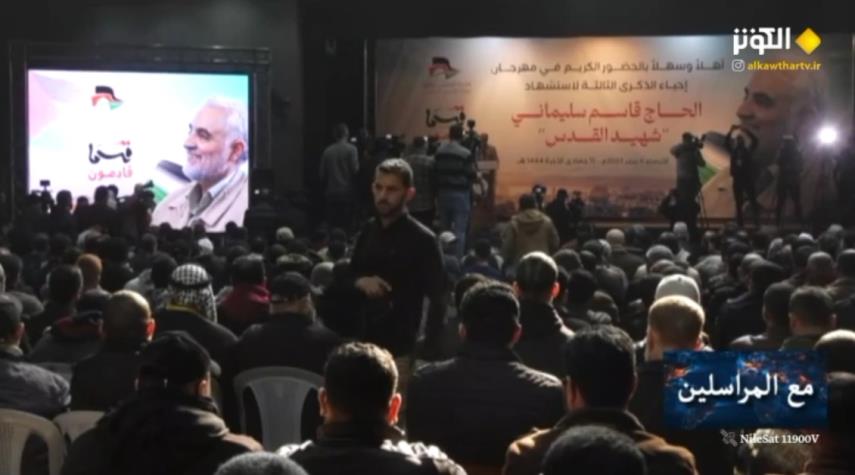 مراسم بزرگداشت سومین سالگرد شهادت سردار حاج قاسم سلیمانی به تظاهراتی در حمایت از مقاومت فلسطین تبدیل شد.
