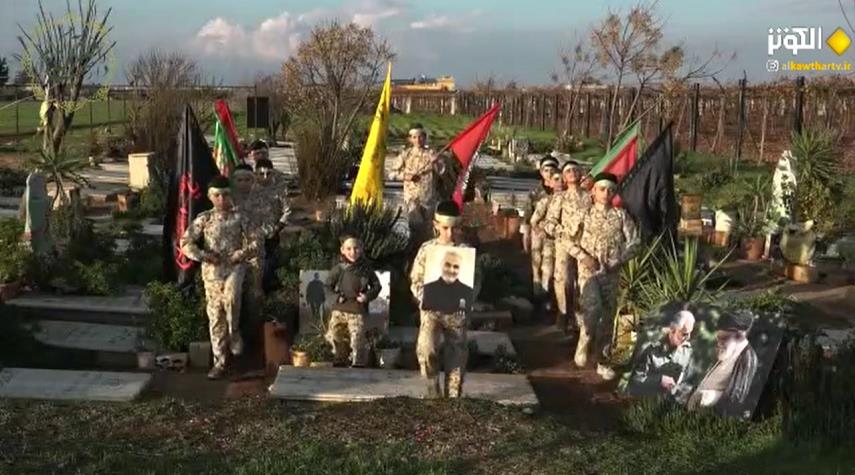 نوجوانان عضو خانه قرآن استان حمص در سومین سالگرد شهادت سردار شهید «قاسم سلیمانی» سرود « نماز عشق» را به پاس مجاهدت های حاج قاسم تقدیم روح بلند و عارفانه وی کردند.