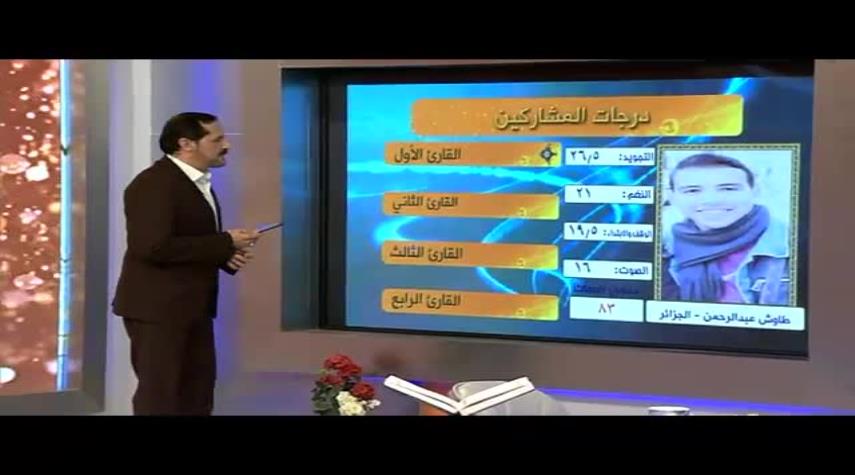 تهران - ویژه الکوثر: طاوش عبدالرحمن شرکت کننده از الجزایر در شانزدهمین شب از سیزدهمین دوره مسابقات قرآنی رمضانی «ان للمتقین مفازا» که شبکه الکوثر برگزار می کند، آیات 159 تا 164 سوره «انعام» را تلاوت کرد.