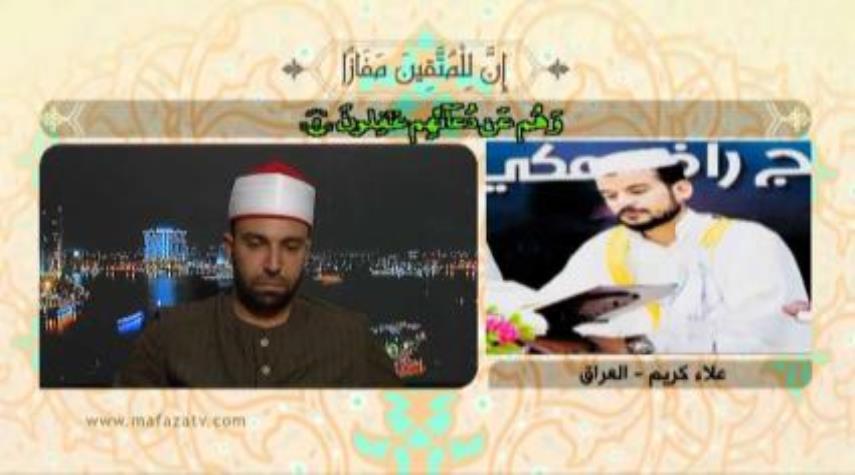 تهران - ویژه الکوثر : تلاوت آیاتی از سوره احقاف توسط «علاء کریم» از عراق در هجدهمین شب مسابقات بین المللی «مفازا» در شبکه الکوثر.