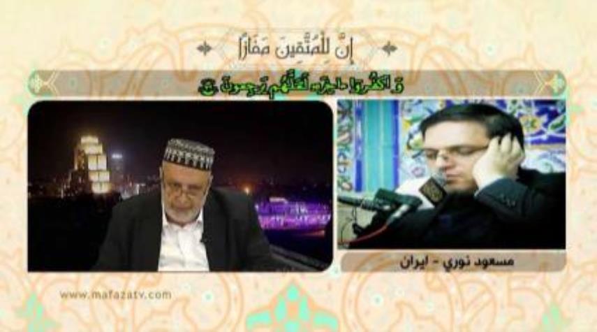 تهران - ویژه الکوثر : تلاوت آیاتی از سوره آل عمران توسط «مسعود نوری» از جمهوری اسلامی ایران در هجدهمین شب مسابقات بین المللی «مفازا» در شبکه الکوثر.