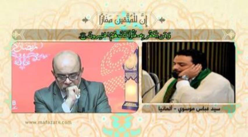 تهران - ویژه الکوثر : تلاوت آیاتی از سوره بقره توسط «سید عباس موسوی» شرکت کننده از کشور آلمان در پانزدهمین شب مسابقات قرآنی «مفازا» در شبکه الکوثر.