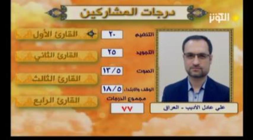 تهران - ویژه الکوثر : تلاوت آیاتی از سوره ابراهیم توسط «علی عادل الادیب» شرکت کننده از عراق در شانزدهمین شب مسابقات بین المللی «مفازا» در شبکه الکوثر.