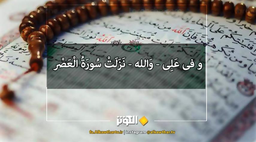 پیامبر گرامی اسلام(ص) در بخشی از خطبه معروف غدیر، نزول سوره مبارکه «والعصر» را به امیرالمؤمنین علی علیه السلام نسبت داده اند.