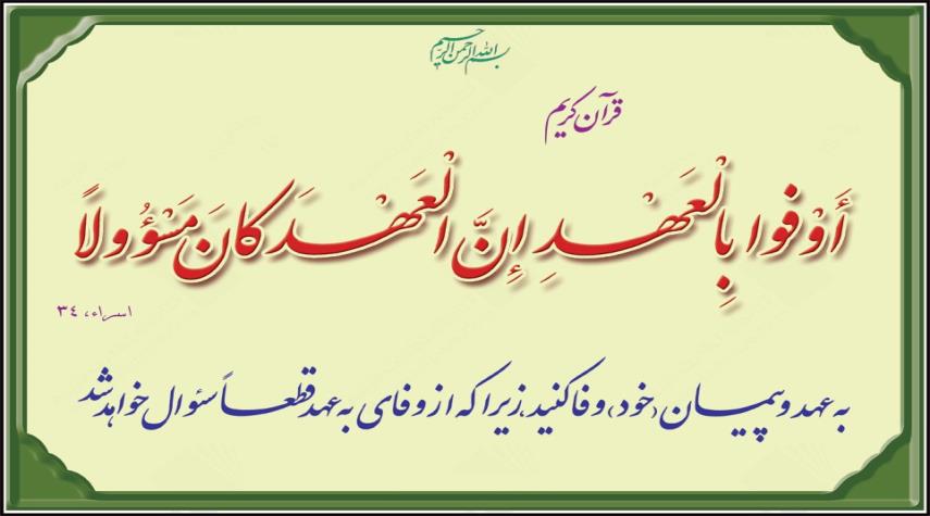 در قرآن کریم در موارد متعددی به «وفای به عهد و پیمان» اشاره شده است که به تشریح معنای آن می پردازیم.