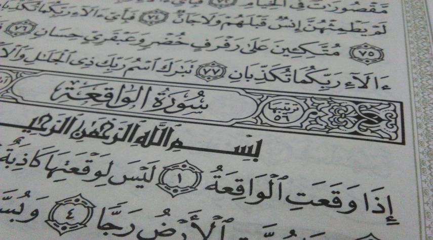 پنجاه و ششمین سوره قرآن، واقعه نام دارد كه مكی و دارای 96 آیه است. از رسول گرامی اسلام صلی الله علیه و آله و سلم روایت شده است هر كس این سوره را قرائت کند نوشته میشود كه او از گروه غافلان نیست.