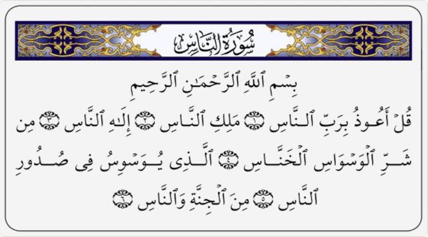سوره ناس، صد و چهاردهمین یعنی آخرین سوره قرآن مجید و از سورههای مکی این کتاب آسمانی است که سفارش فراوانی به قرائت آن شده است.