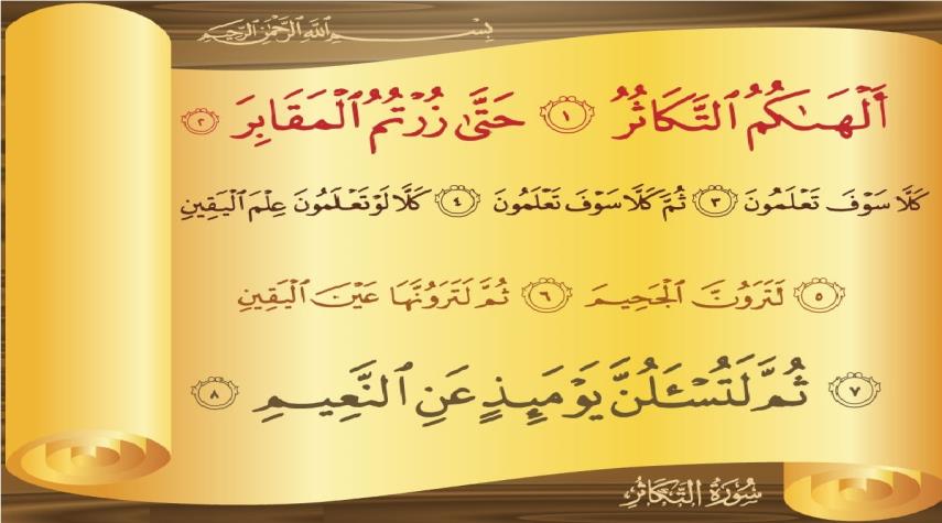 صد و دومین سوره قرآن کریم در مکه نازل شده و در جزء سیام جای گرفته است. نام این سوره از واژه ای گرفته شده که بهمعنای چشم و همچشمی در مالاندوزی و بزرگی است،