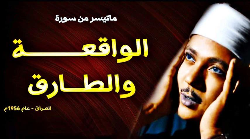تهران - الکوثر : استاد عبدالباسط این تلاوت ماندگار را که سوره های واقعه و طارق را شامل می شود در سال 1956 در عراق اجرا کرد.