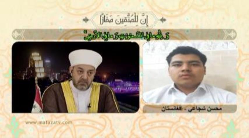 تهران - ویژه الکوثر : تلاوت آیاتی از سوره آل عمران توسط «محسن شجاعی» از افغانستان در پنجمین شب مرحله نیمه نهایی مسابقات بین المللی «مفازا» در شبکه الکوثر.