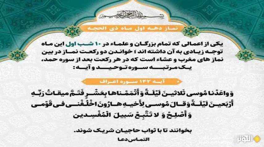 نماز وواعدنا یکی از عبادات مستحبی ویژه دهه اول ذیالحجه است که با میقات حضرت موسی (ع) ارتباط معنوی دارد. این نماز، که همراه با قرائت آیه ۱۴۲ سوره اعراف خوانده میشود، از جایگاه ویژهای در میان اعمال عبادی این ایام برخوردار است و طبق روایات، موجب شراکت در ثواب حاجیان میشود.