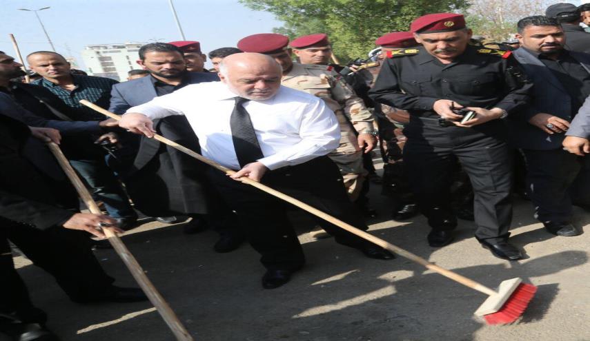 نخست وزیر عراق دوشادوش مردم و رفتگران به نظافت کردن خیابان ها رفت !