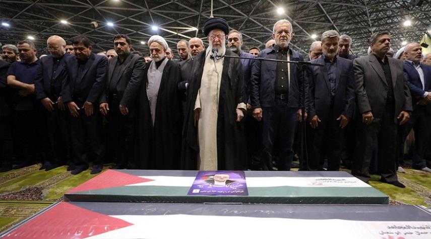 امیر قطر و ده ها هزار نفر بر پیکر شهید اسماعیل هنیه رئیس دفتر جنبش سیاسی حماس اقامه نماز کردند.
