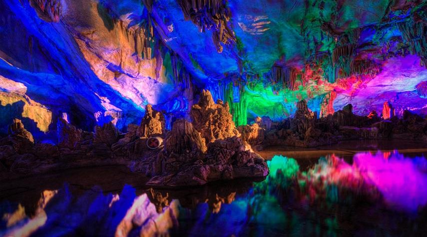 غار رید فلوت چین؛ شگفت انگیزترین غار رنگی جهان