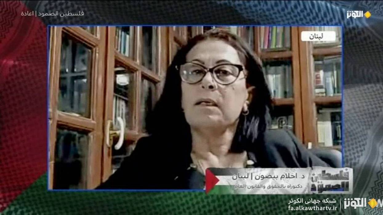 دکتر احلام بیضون تأکید کرد که جنایات رژیم صهیونیستی از سال ۱۹۶۷ رویدادهایی مجزا نیستند، بلکه امتداد سیستماتیک یک اشغال استعماری و جایگزینشونده هستند که با اسطورههای دینی در تلاش است هویت فلسطینی را محو کرده و وجود خود را توجیه نماید؛ این امر نقض آشکار تمامی قوانین و میثاقهای بینالمللی محسوب میشود.