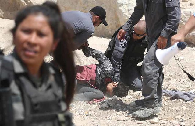 این فلسطینیها مانع خودروهای نظامی اسرائیلیها شدند که به روستای خان الاحمر یورش برده بودند و در پی درگیری به وجود آمده میان دو طرف دهها فلسطینی از جمله تعدادی زن مورد ضرب و شتم پلیس اسرائیل قرار گرفته و نیروهای پلیس حجاب آنها از سرشان برداشتند و در نهایت بازداشت شدند.