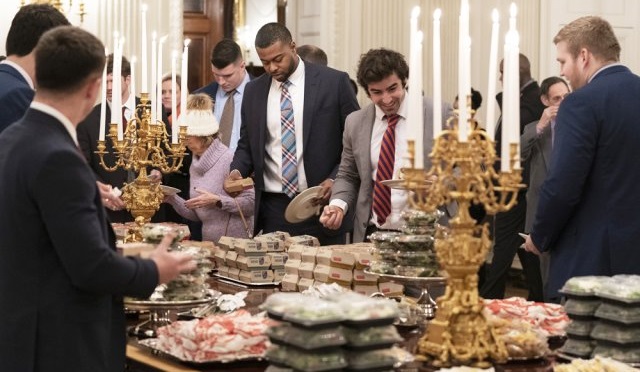 به گزارش پایگاه شبکه الکوثر، اعضای تیم فوتبال آمریکایی «کلمسون تایگرز» که به مناسبت پیروزی خود به کاخ سفید دعوت شده بودند به علت تعطیل بودن دولت آمریکا که نتیجه جدال رئیس جمهور این کشور با کنگره است، با «فست فود» که از بیرون سفارش داده شده بود پذیرایی شدند.