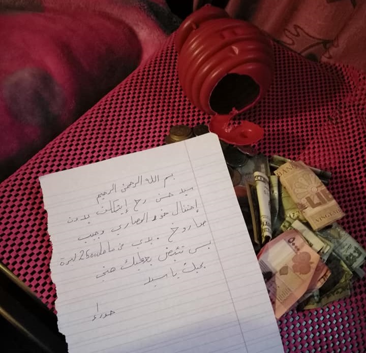 به گزارش پایگاه شبکه الکوثر، به نقل از شبکه المنار لبنان ، این کودک همراه با 25 هزار لیره لبنانی (هر 1500 لیره یک دلار) داخل قلک خود نامه ای به نصرالله نیز نوشته است.