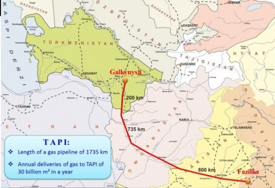 ترکمنستان در حال حاضر در مقابل وام های دریافتی از چین عملا گاز خود را فقط به این کشور صادر کرده و تقریبا از امکان به دست آوردن پول از این طریق محروم شده است. بنابر این به دنبال ایجاد مسیرهای جدید صادراتی می گردد که به این دلیل «عشق آباد» توجه زیادی به پروژه خط لوله تاپی نشان می دهد.