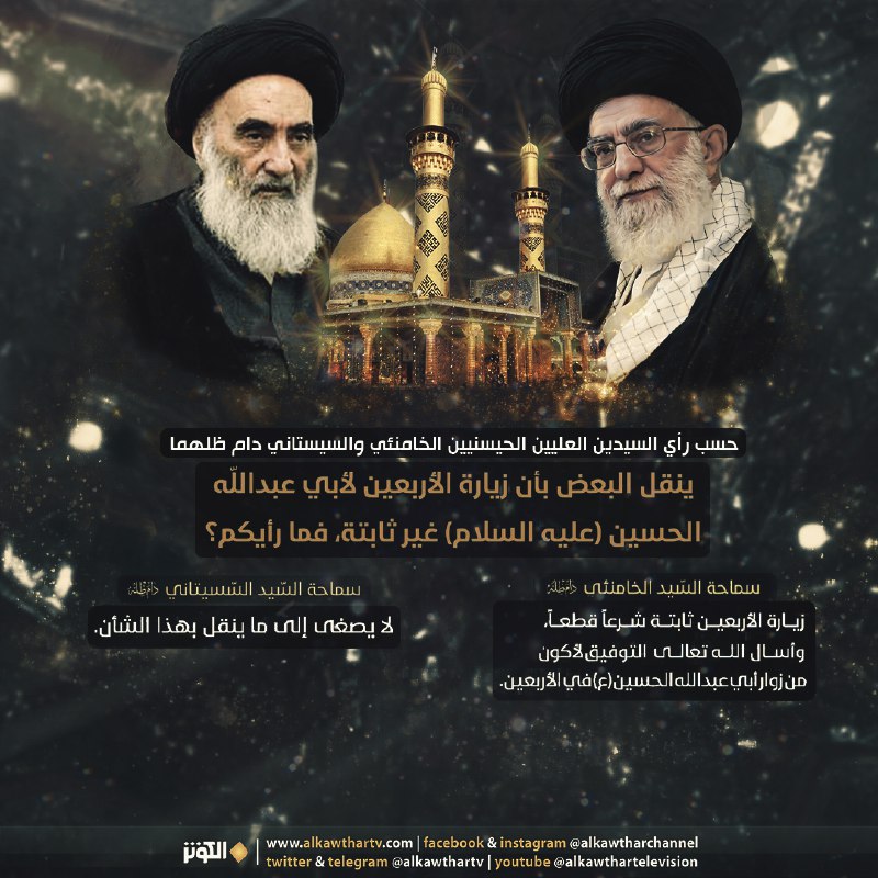 به گزارش پایگاه شبکه الکوثر، حضرت آیت الله خامنه ای در پاسخ به این شبهه فرمودند: «زیارت اربعین از نظر شرعی، اثبات شده قطعی است و از خداوند تعالی مسئلت دارم به من توفیق دهد از زائران اباعبدالله الحسین (ع) در اربعین باشم».