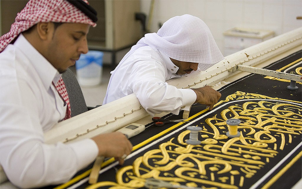 پرده خانه خدا به رنگ مشکی و از ابریشم خالص است که امسال نیز این پرده به همت بیش از 150 هنرمند در کارگاه ویژه دوخت پرده کعبه در حال تکمیل است.