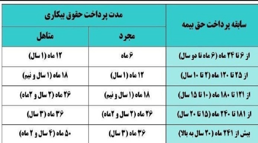 مدت پرداخت  و جدول بیمه بیکاری