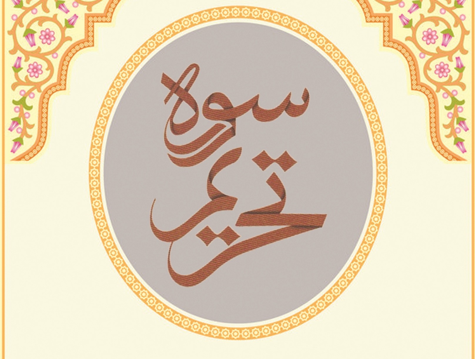 يَا أَيُّهَا النَّبِيُّ لِمَ تُحَرِّمُ مَا أَحَلَّ اللَّـهُ لَكَ ۖ تَبْتَغِي مَرْضَاتَ أَزْوَاجِكَ ۚ وَاللَّـهُ غَفُورٌ رَّحِيمٌ ﴿١﴾ قَدْ فَرَضَ اللَّـهُ لَكُمْ تَحِلَّةَ أَيْمَانِكُمْ ۚ وَاللَّـهُ مَوْلَاكُمْ ۖ وَهُوَ الْعَلِيمُ الْحَكِيمُ ﴿٢﴾ وَإِذْ أَسَرَّ النَّبِيُّ إِلَىٰ بَعْضِ أَزْوَاجِهِ حَدِيثًا فَلَمَّا نَبَّأَتْ بِهِ وَأَظْهَرَهُ اللَّـهُ عَلَيْهِ عَرَّفَ بَعْضَهُ وَأَعْرَضَ عَن بَعْضٍ ۖ فَلَمَّا نَبَّأَهَا بِهِ قَالَتْ مَنْ أَنبَأَكَ هَـٰذَا ۖ قَالَ نَبَّأَنِيَ الْعَلِيمُ الْخَبِيرُ ﴿٣﴾ إِن تَتُوبَا إِلَى اللَّـهِ فَقَدْ صَغَتْ قُلُوبُكُمَا ۖ وَإِن تَظَاهَرَا عَلَيْهِ فَإِنَّ اللَّـهَ هُوَ مَوْلَاهُ وَجِبْرِيلُ وَصَالِحُ الْمُؤْمِنِينَ ۖ وَالْمَلَائِكَةُ بَعْدَ ذَٰلِكَ ظَهِيرٌ ﴿٤﴾ عَسَىٰ رَبُّهُ إِن طَلَّقَكُنَّ أَن يُبْدِلَهُ أَزْوَاجًا خَيْرًا مِّنكُنَّ مُسْلِمَاتٍ مُّؤْمِنَاتٍ قَانِتَاتٍ تَائِبَاتٍ عَابِدَاتٍ سَائِحَاتٍ ثَيِّبَاتٍ وَأَبْكَارًا ﴿٥﴾ يَا أَيُّهَا الَّذِينَ آمَنُوا قُوا أَنفُسَكُمْ وَأَهْلِيكُمْ نَارًا وَقُودُهَا النَّاسُ وَالْحِجَارَةُ عَلَيْهَا مَلَائِكَةٌ غِلَاظٌ شِدَادٌ لَّا يَعْصُونَ اللَّـهَ مَا أَمَرَهُمْ وَيَفْعَلُونَ مَا يُؤْمَرُونَ ﴿٦﴾ يَا أَيُّهَا الَّذِينَ كَفَرُوا لَا تَعْتَذِرُوا الْيَوْمَ ۖ إِنَّمَا تُجْزَوْنَ مَا كُنتُمْ تَعْمَلُونَ ﴿٧﴾ يَا أَيُّهَا الَّذِينَ آمَنُوا تُوبُوا إِلَى اللَّـهِ تَوْبَةً نَّصُوحًا عَسَىٰ رَبُّكُمْ أَن يُكَفِّرَ عَنكُمْ سَيِّئَاتِكُمْ وَيُدْخِلَكُمْ جَنَّاتٍ تَجْرِي مِن تَحْتِهَا الْأَنْهَارُ يَوْمَ لَا يُخْزِي اللَّـهُ النَّبِيَّ وَالَّذِينَ آمَنُوا مَعَهُ ۖ نُورُهُمْ يَسْعَىٰ بَيْنَ أَيْدِيهِمْ وَبِأَيْمَانِهِمْ يَقُولُونَ رَبَّنَا أَتْمِمْ لَنَا نُورَنَا وَاغْفِرْ لَنَا ۖ إِنَّكَ عَلَىٰ كُلِّ شَيْءٍ قَدِيرٌ ﴿٨﴾ يَا أَيُّهَا النَّبِيُّ جَاهِدِ الْكُفَّارَ وَالْمُنَافِقِينَ وَاغْلُظْ عَلَيْهِمْ ۚ وَمَأْوَاهُمْ جَهَنَّمُ ۖ وَبِئْسَ الْمَصِيرُ ﴿٩﴾ ضَرَبَ اللَّـهُ مَثَلًا لِّلَّذِينَ كَفَرُوا امْرَأَتَ نُوحٍ وَامْرَأَتَ لُوطٍ ۖ كَانَتَا تَحْتَ عَبْدَيْنِ مِنْ عِبَادِنَا صَالِحَيْنِ فَخَانَتَاهُمَا فَلَمْ يُغْنِيَا عَنْهُمَا مِنَ اللَّـهِ شَيْئًا وَقِيلَ ادْخُلَا النَّارَ مَعَ الدَّاخِلِينَ ﴿١٠﴾ وَضَرَبَ اللَّـهُ مَثَلًا لِّلَّذِينَ آمَنُوا امْرَأَتَ فِرْعَوْنَ إِذْ قَالَتْ رَبِّ ابْنِ لِي عِندَكَ بَيْتًا فِي الْجَنَّةِ وَنَجِّنِي مِن فِرْعَوْنَ وَعَمَلِهِ وَنَجِّنِي مِنَ الْقَوْمِ الظَّالِمِينَ ﴿١١﴾ وَمَرْيَمَ ابْنَتَ عِمْرَانَ الَّتِي أَحْصَنَتْ فَرْجَهَا فَنَفَخْنَا فِيهِ مِن رُّوحِنَا وَصَدَّقَتْ بِكَلِمَاتِ رَبِّهَا وَكُتُبِهِ وَكَانَتْ مِنَ الْقَانِتِينَ ﴿١٢﴾