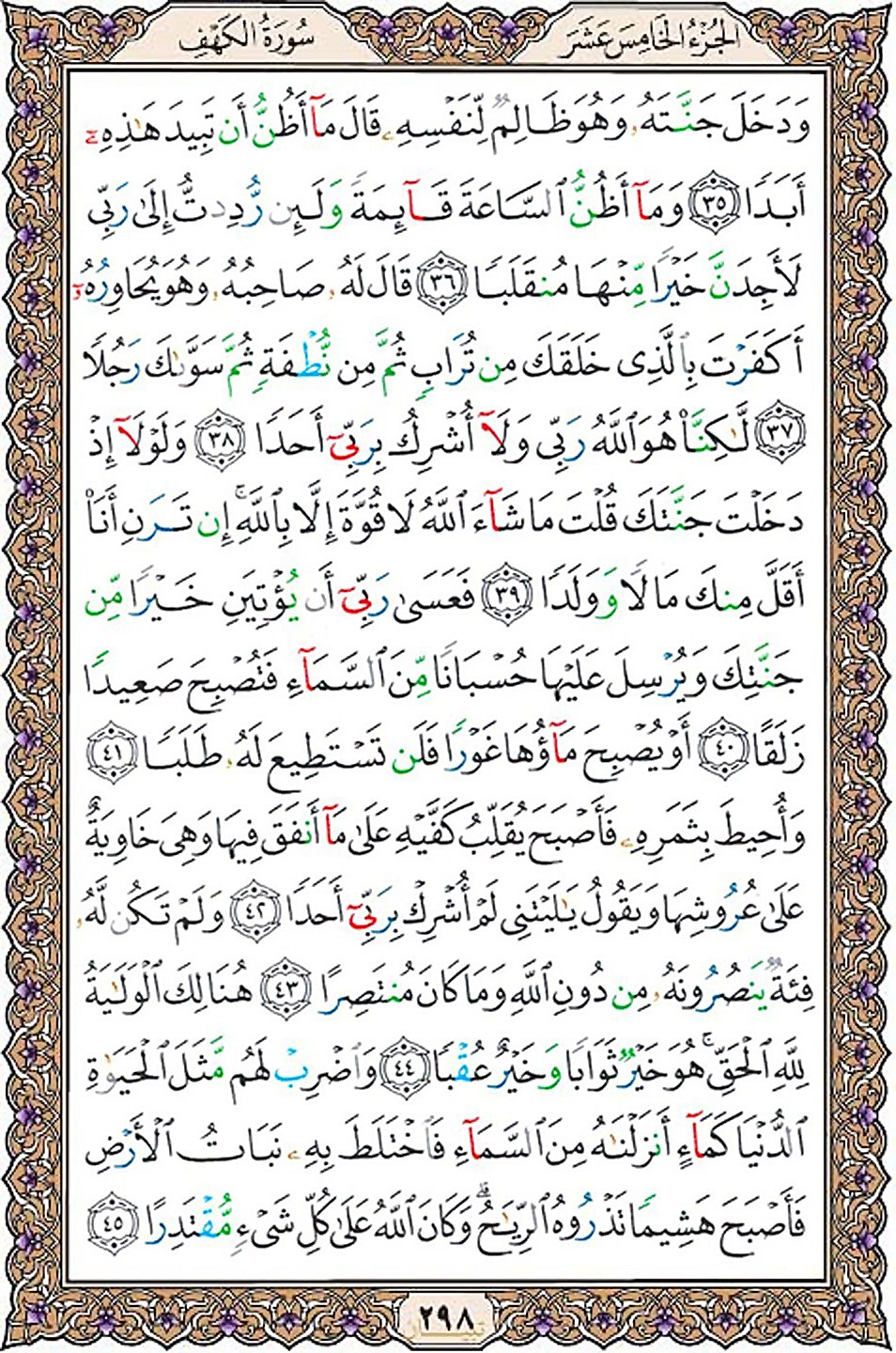 و برای امت، زندگانی دنیا را چنین مثل زن که ما آب بارانی از آسمان نازل کنیم و به آن آب، درختان و نباتات گوناگون زمین درهم پیچیده و خرم بروید، سپس همه درهم شکسته و خشک شود و به دست بادها زیر و زبر و پراکنده گردد، و خدا بر هر چیز اقتدار کامل دارد. (45)