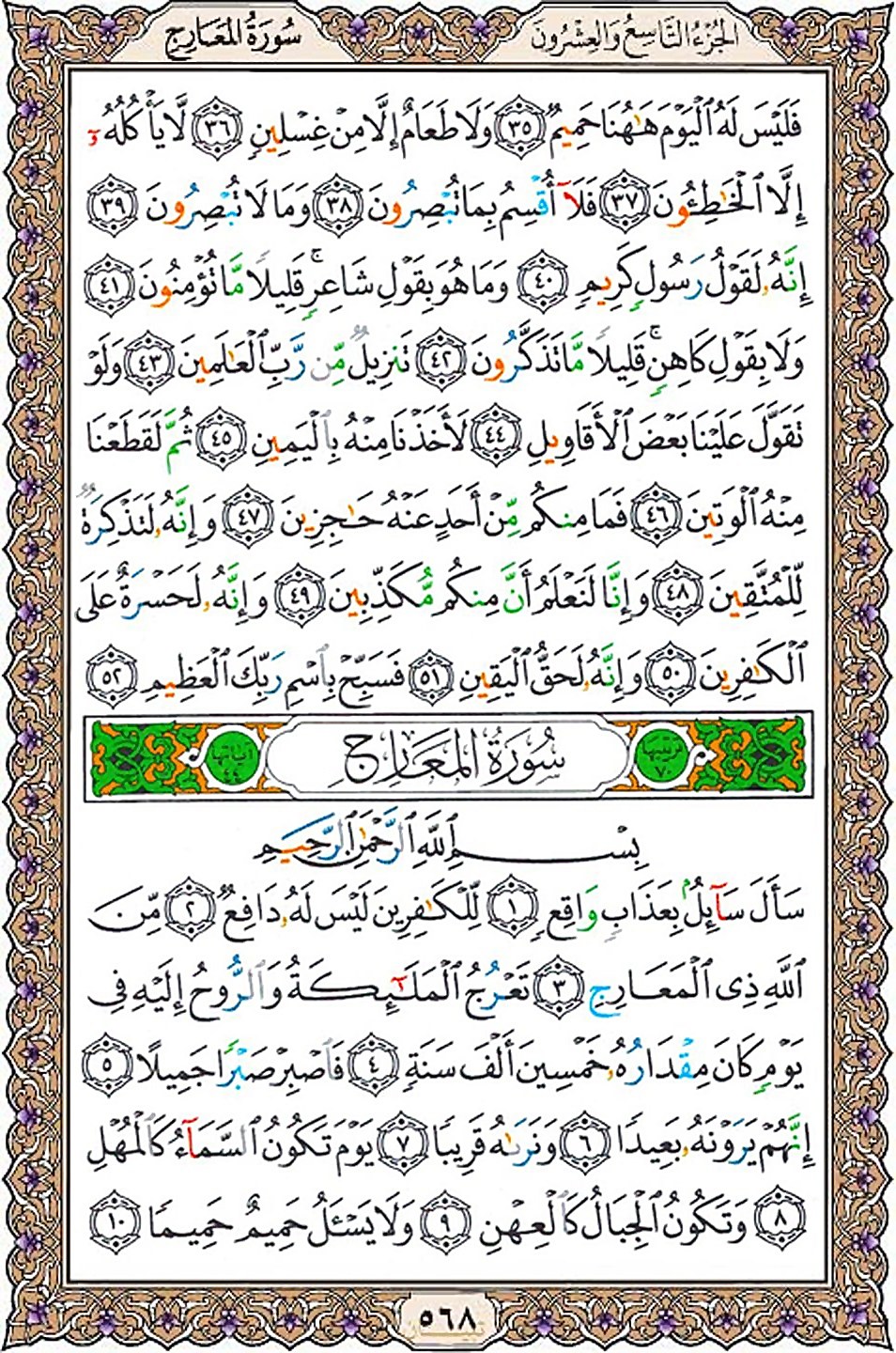 فرشتگان و روح الامین (برای اخذ فرمان) به سوی (عرش) خدا بالا روند در روزی که مدتش پنجاه هزار سال خواهد بود. (۴)