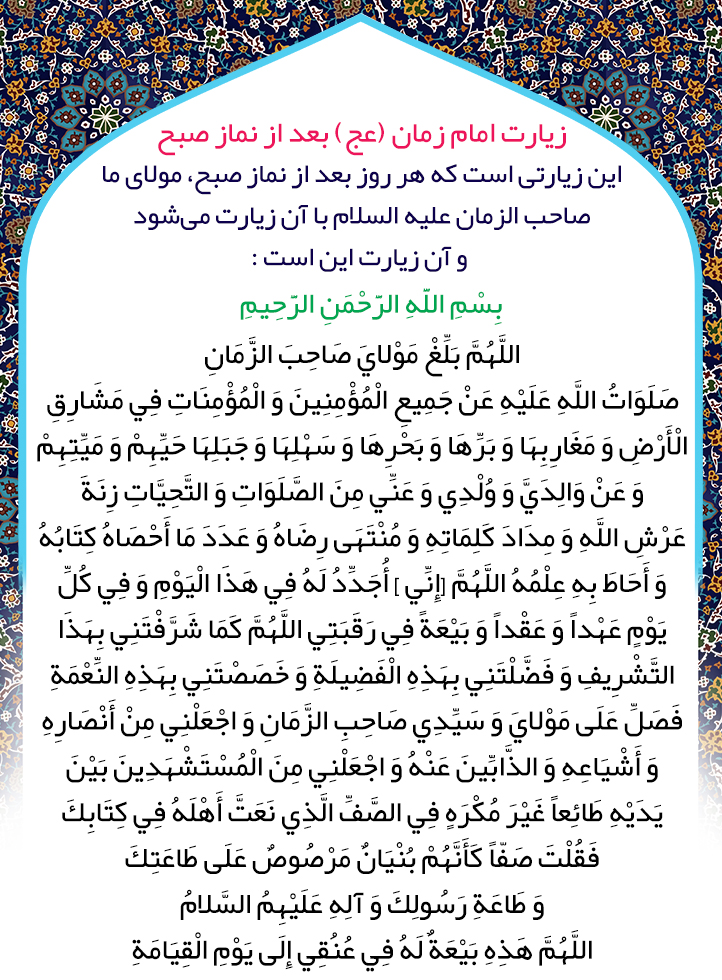زیارت امام زمان (عج) بعد از نماز صبح با صدای استاد فرهمند